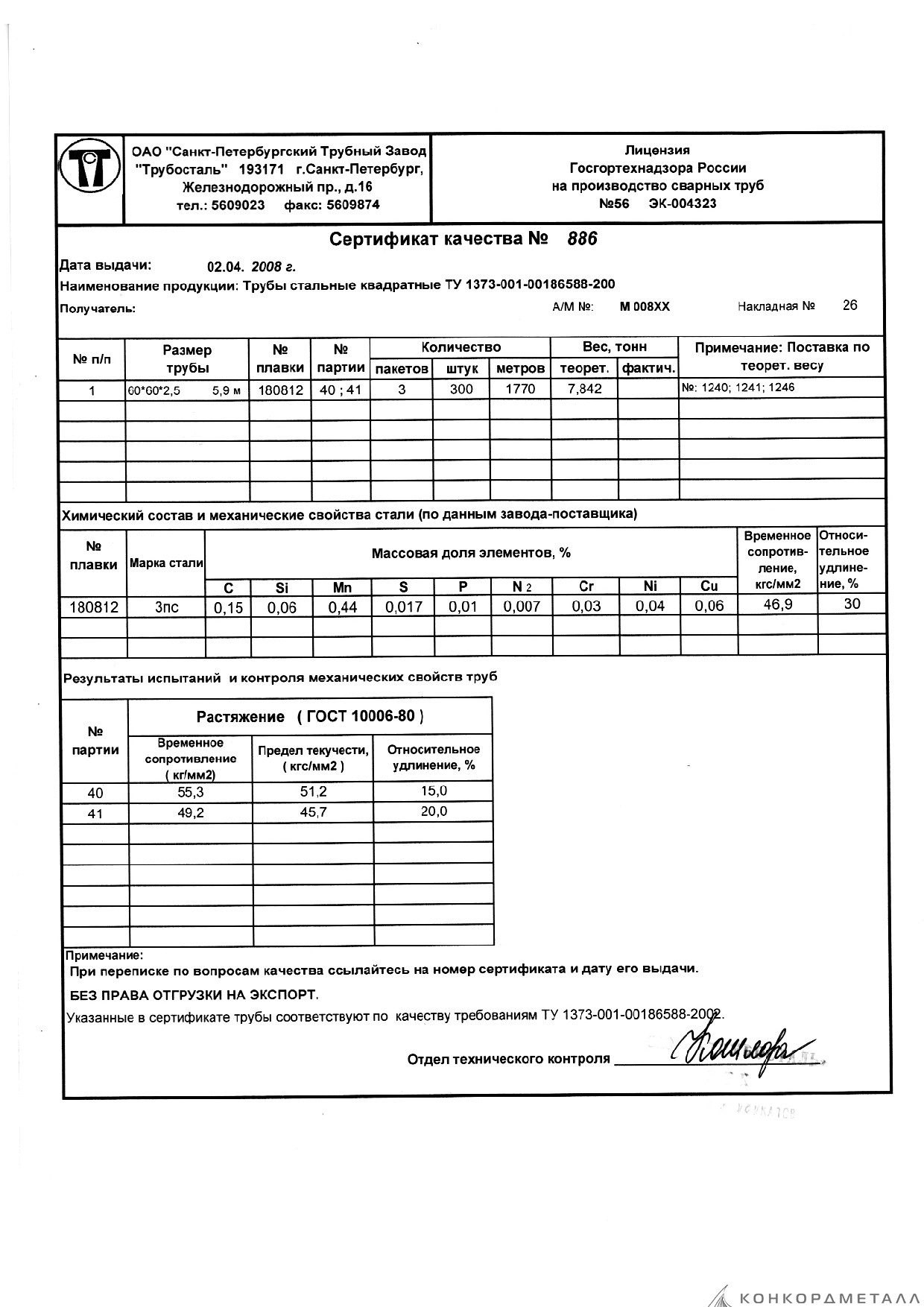 С каждой товарной позицией мы предоставляем все сертификаты и паспорта качества, а также товарно-транспортную накладную.