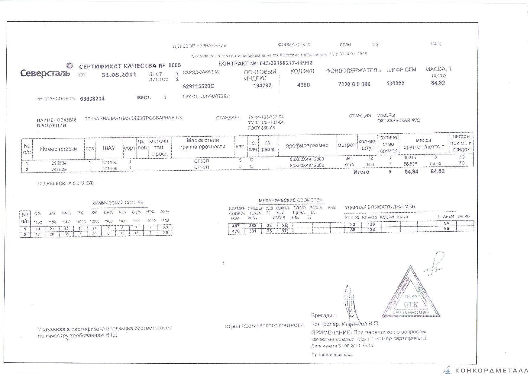 С каждой товарной позицией мы предоставляем все сертификаты и паспорта качества, а также товарно-транспортную накладную.