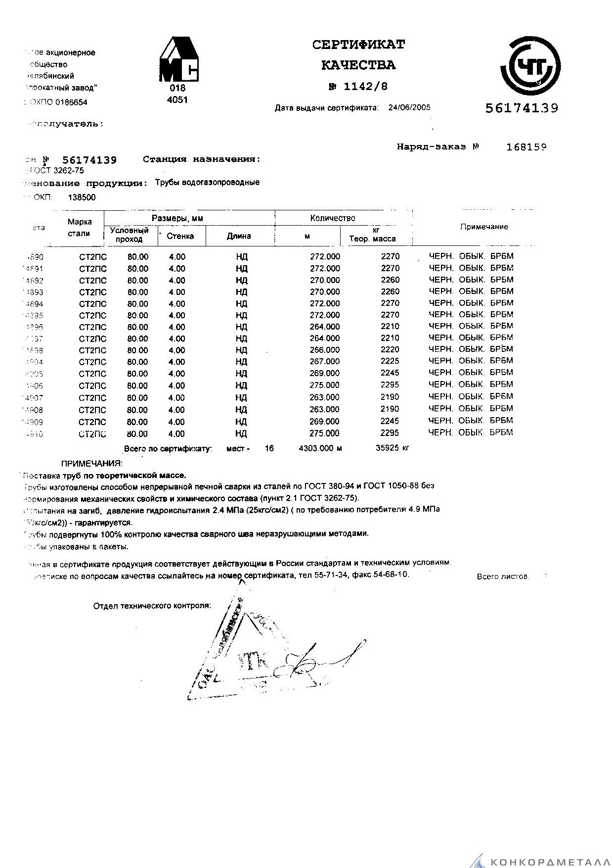 С каждой товарной позицией мы предоставляем все сертификаты и паспорта качества, а также товарно-транспортную накладную.